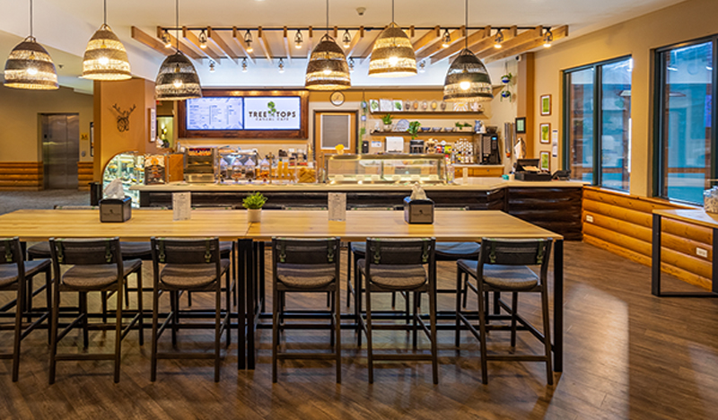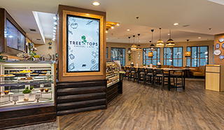 Located just off the grand main lobby, Treetops Cafe offers a convenient place for coffee, breakfast, lunch, ice cream and more! Plus, we offer fresh made sugar cones each evening which fill the cafe and lobby with a perfectly sweet aroma!
